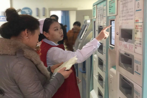 幾分鐘后患者恢復(fù)意識(shí),醫(yī)務(wù)人員將患者送往急診科繼續(xù)治療,為保證患者途中安全,門診部主任李浩安排導(dǎo)診人員、志愿者及物業(yè)保安人員房文強(qiáng)一路護(hù)送到急診科。