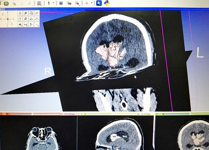 2016年1月18日,錦州市中心醫(yī)院神經外科葛新醫(yī)生完成東北地區(qū)首例3D Slicer手機軟件設備導航下內鏡輔助腦血腫清除術,填補東北地區(qū)空白,在不具備標準神經導航設備的情況下達到了手術精準定位,最大可能清除血腫,為廣大腦出血患者提供了精準、微創(chuàng)的手術治療方式。