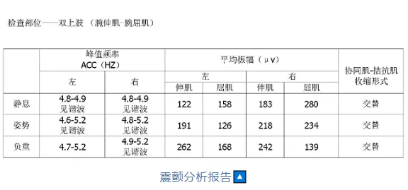 帕金森病的震顫分析典型表現(xiàn)為靜止性震顫,震顫頻率一般為4-6Hz,主動肌和拮抗肌主要呈現(xiàn)交替收縮模式,有諧波共振的特點;而原發(fā)性震顫的肌電圖震顫分析通常表現(xiàn)為姿勢性震顫,頻率一般在4-12Hz之間,主動肌與拮抗肌主要以同步收縮為主。所以不同疾病,震顫的模式不同,這有助于臨床鑒別一些復(fù)雜震顫,具有很大的臨床應(yīng)用價值。