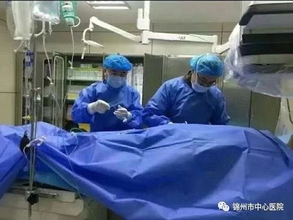 2020年2月27日晚七點(diǎn),徐紹輝主任接到了協(xié)作醫(yī)院錦州市開發(fā)區(qū)醫(yī)院劉院長的電話:一名51歲的趙姓患者因突發(fā)胸痛入院,心電圖檢查診斷為“急性廣泛前壁心肌梗死”,胸痛劇烈,病情危重,命懸一線。徐紹輝主任在胸痛中心微信群里翻閱患者檢查資料后立即決定轉(zhuǎn)入胸痛中心緊急行血管再灌注治療。當(dāng)日胸痛中心值班的是朱國偉主任醫(yī)師,接到徐主任指示,提前在急診科等候患者。而就在患者被抬下“120”搶救車時(shí),病情急劇惡化,出現(xiàn)了抽搐并意識(shí)不清,伴隨患者家屬的哭喊,朱國偉醫(yī)生第一時(shí)間出現(xiàn)在現(xiàn)場(chǎng),判斷患者是心梗致命并發(fā)癥“室顫”,立即心電監(jiān)護(hù)、電除顫,數(shù)秒之間解除了惡性心律失常。但患者仍然狀態(tài)衰竭,呼吸淺慢,喚之不應(yīng),面容青紫,危在旦夕。畢竟是遠(yuǎn)距離轉(zhuǎn)運(yùn),治療的黃金時(shí)間在流逝,朱國偉醫(yī)生當(dāng)機(jī)立斷,就是希望渺茫也要救,在搶救藥維持下直接推入導(dǎo)管室行冠脈造影支架植入術(shù)治療。在路巖醫(yī)師協(xié)助下,兩名介入醫(yī)師與死神搶人,經(jīng)過半個(gè)小時(shí)的奮戰(zhàn),終于讓血液再次流入了心肌。患者冠脈造影顯示前降支近端完全閉塞,導(dǎo)致患者前壁心肌大面積缺血壞死,經(jīng)過球囊擴(kuò)張及支架植入,前降支恢復(fù)了3級(jí)血流,實(shí)現(xiàn)了血液再灌注。瞬時(shí)患者神志轉(zhuǎn)清,生命體征也平穩(wěn)了,創(chuàng)造了起死回生的奇跡。