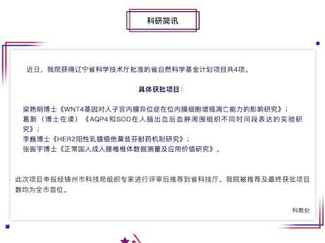近日,我院獲得遼寧省科學技術廳批準的省自然科學基金計劃項目共4項。
